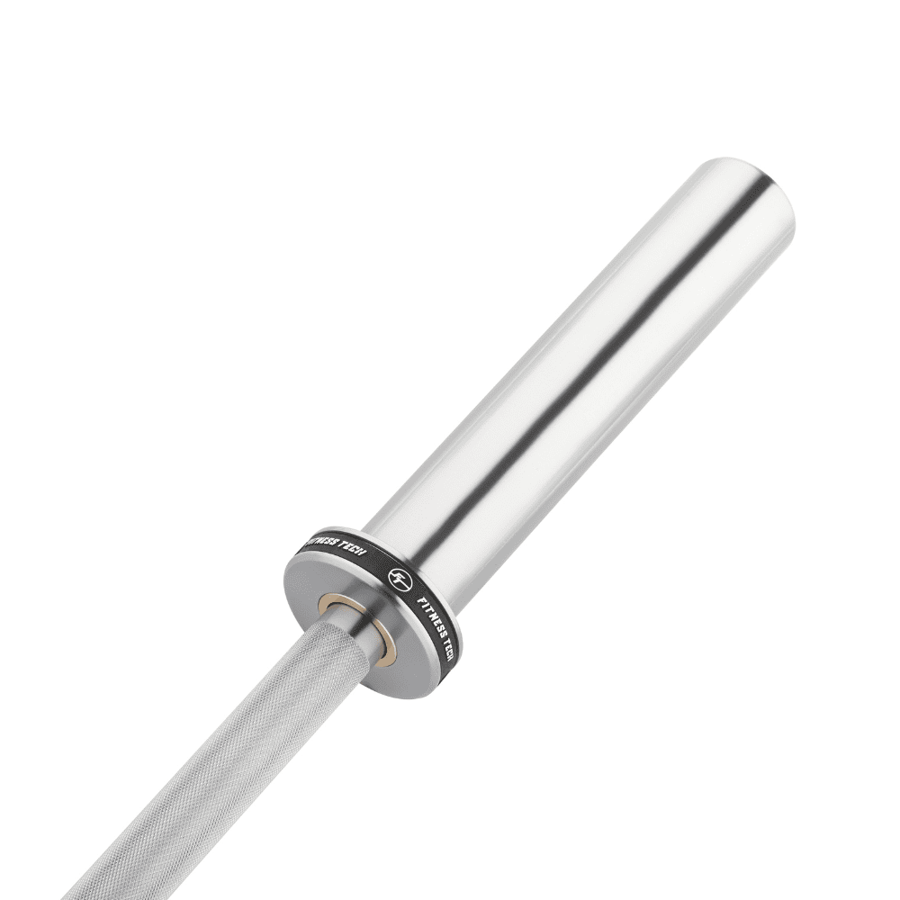 Fabricada en acero 45, incorpora 2 rodamientos y 2 casquillos de bronce (bronze bushings) que proporcionan un movimiento más suave y controlado. Su acabado cromado, su diámetro de agarre de 25 mm y su capacidad de carga de hasta 315 kg la convierten en una barra fiable, duradera y adecuada para entrenamientos exigentes.