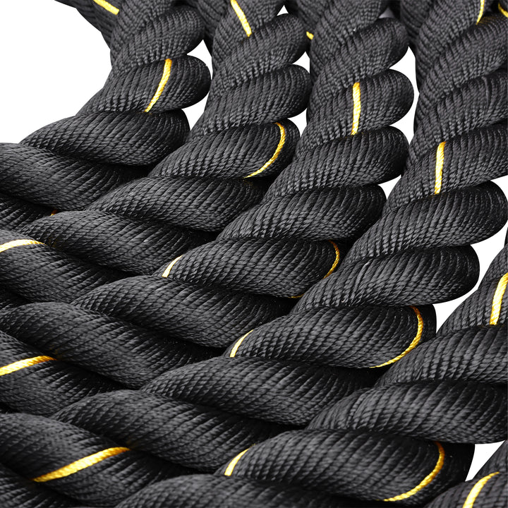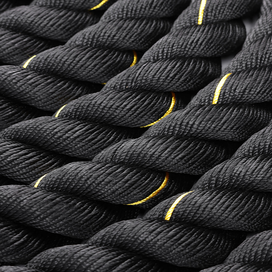 Cuerdas de entrenamiento funcionales o de crossfit. Están hechas de poly-twine duradero con los extremos termo contraídos para mejor agarre. Además, son de color negro para ayudar a ocultar la acumulación de suciedad con el tiempo.