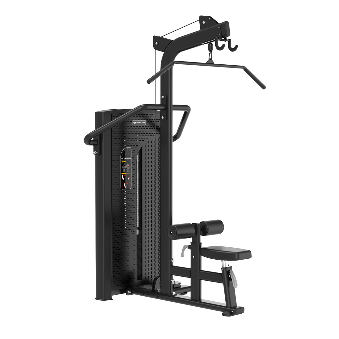 La máquina selectorizada de jalón al pecho es un equipo de musculación profesional diseñado para trabajar de forma segura y eficaz los músculos de la espalda, especialmente el dorsal ancho, los romboides y los bíceps. Gracias a su movimiento guiado y su relación de transmisión 1:1, permite una carga directa y uniforme que favorece la correcta ejecución del ejercicio sin comprometer las articulaciones. Su estructura robusta y su diseño ergonómico la convierten en una opción ideal para gimnasios, centros deportivos y espacios de entrenamiento intensivo.