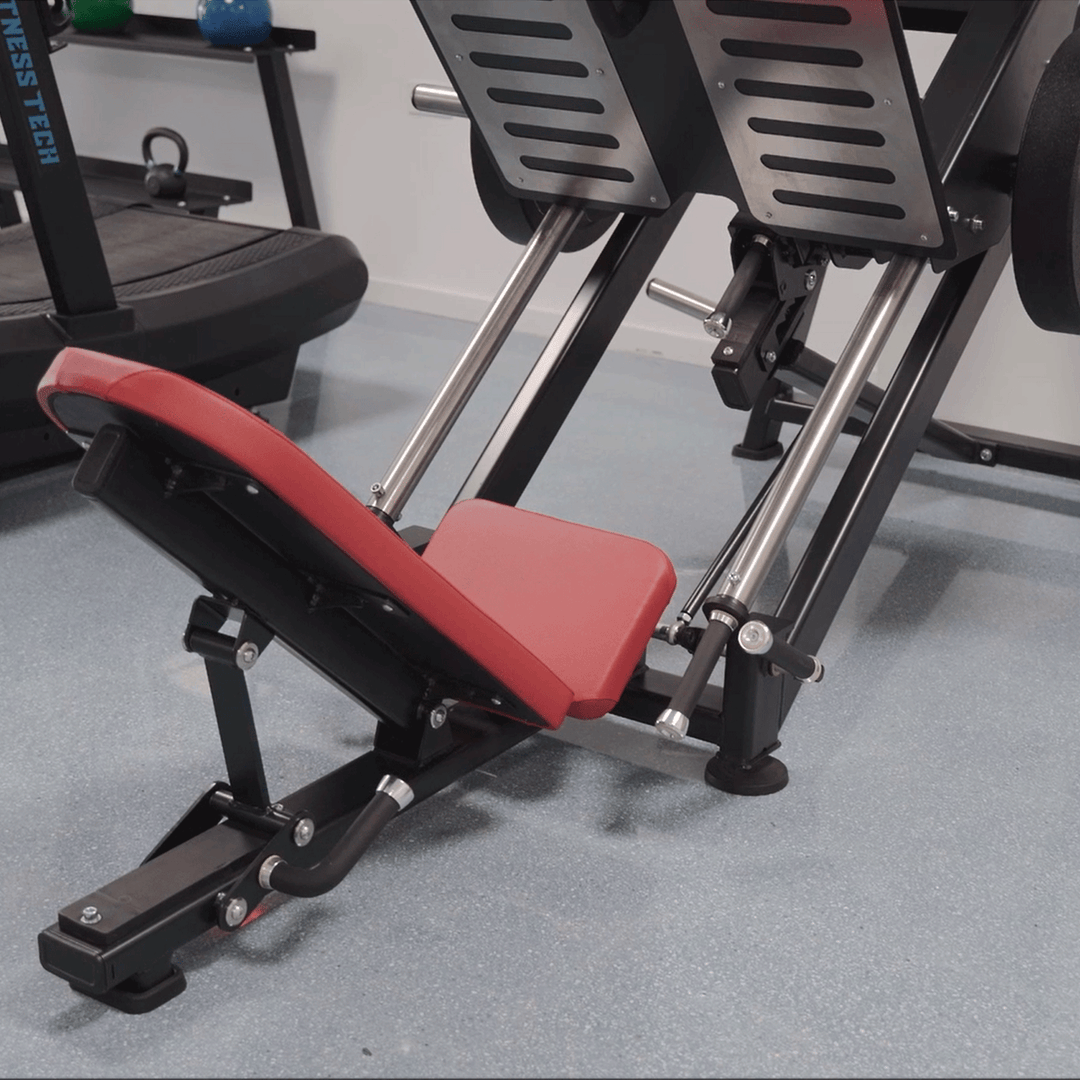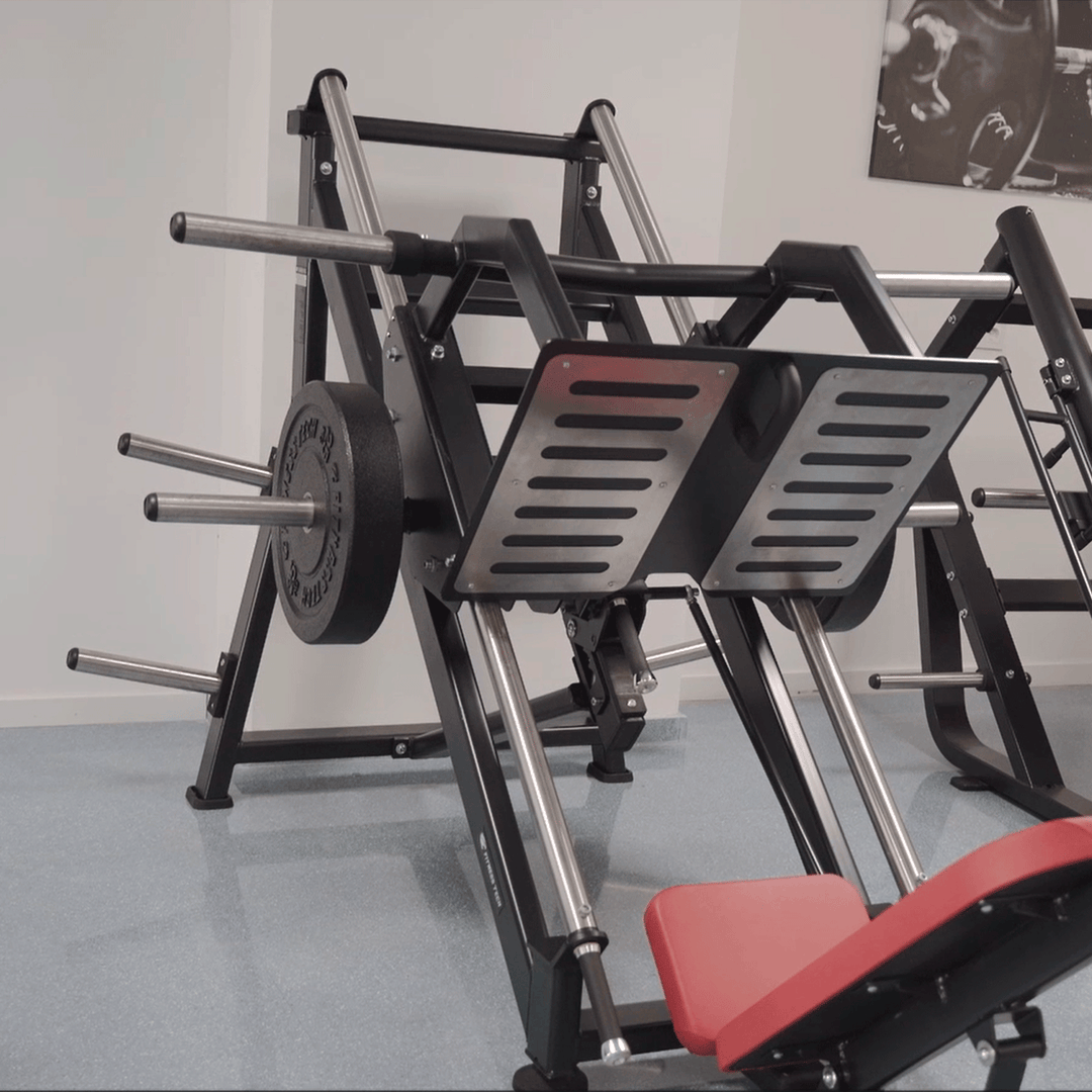 Con una estructura robusta, construida en acero resistente y un diseño ergonómico, esta prensa te permite realizar movimientos suaves y controlados, reduciendo el riesgo de lesiones mientras trabajas de manera óptima tus cuádriceps, glúteos, isquiotibiales y pantorrillas.